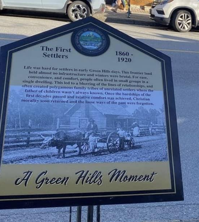 The area that would become the city of Green Hills was explored by Morgan McConnell in the early 1800s, who made his home base in Green Hills. The first settlers arrived in 1860. In 1883, Green Hills acted as a supply depot for the moving town that lead the path of construction for the Northern Pacific Railway, which was completed in Green Hills later that year on September 8th.